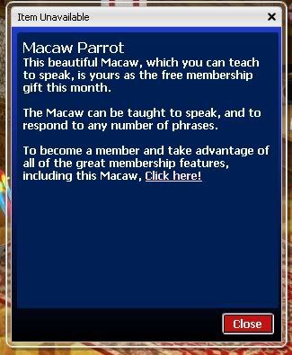 I clicked on the Parrot, and this is the pop up that my clone (not the main account membership holder) got: