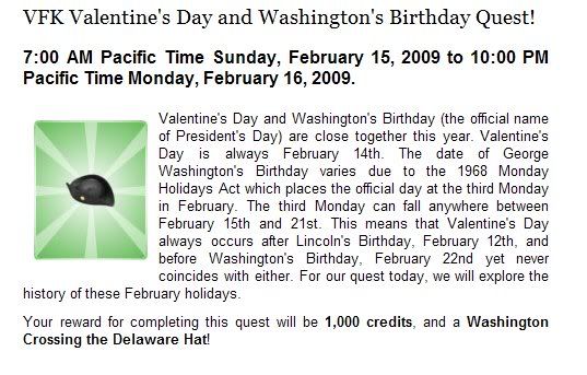 Topic: VFK Valentine's Day and Washington's Birthday Quest 2/15 - 2/16 (Read 3903 times)