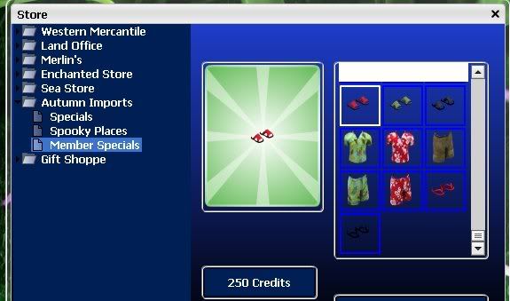 Thanks Astro for adding the pictures and prices.  I need to learn how to do that.  Mine would be a screen shot with everything showing...  There are still more member special items (same clothing but in blue, orange, and green; red, brown, and green slip on shoes; and green and red boy beach shirts, brown shorts, and boy red and black sandals and flips) but idk how to show them.    :hmmmm: :'(